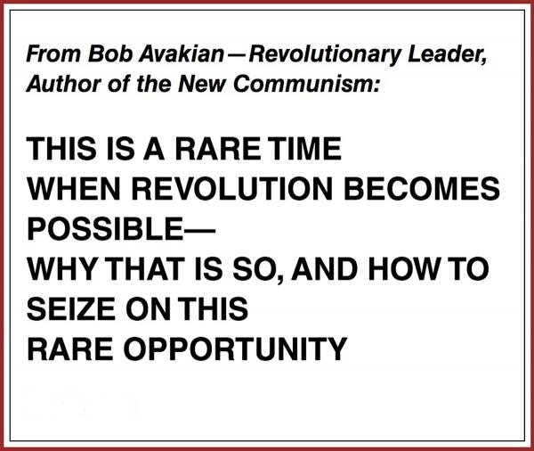 The revolution that is needed now depends on a revolutionary situation: a profound crisis affecting all of society and its dominant and ruling institutions—and this revolution must involve not the acts of isolated individuals or of small groups disconnected from masses of people, but the increasingly conscious and determined action and support of masses, of millions, led by a far-seeing, scientifically-based force with deep ties and a powerful organized basis among those masses. And again—unlike all previous revolutions led by exploiting classes (such as the American, or even the French Revolution of a previous era)—this communist revolution must aim to transform all of society, and ultimately the world as a whole, to bring about the abolition and uprooting of all exploitative and oppressive relations everywhere and enable human beings, at long last, to give the highest expression to their humanity.